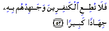 "Therefore do not obey the negators, but strive against them [jahidhum] with the Quran with the utmost resistance [jihadan kabira]."