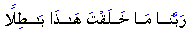 Al-Imran (The Family of Imran) In human nature two qualities are not unknown to us: (1) the admiration of greatness, and (2) the acknowledgement of kindness. When you see a precision instrument or a latest appliance, or an exquisite picture, or an eloquent article, you do not stop talking of its beauty until your praise extends to its creator. The deep wisdom or skill of the individuals makes you bow your intellect to them involuntarily in respect and admiration. Likewise, when someone does you a favor, you always remember it, and your tongue expresses gratitude just as your heart is filled with praise and awe! A poet says: "Your favor has gained you three things from me: My hand, my tongue, and my hidden heart." The Messenger of God (peace be upon him) came to arouse these two qualities in the hearts of humans towards the One Who is most deserving of them. Do you not admire the greatness and salute its possessor? Do you not appreciate kindness and show gratitude to its doer? You surely admire the inventor of the aeroplane, and every time you see it streaking through the atmosphere your praise of his genius increases. So what do you think, therefore, of the One Who causes the thousands of stars to move in space without stopping or deviating? What do you think of Him Who created the mind of that inventor and deposited intelligence in the folds of his brain so that he could produce such things that arouse our admiration? Is not your Lord and the Lord of all things more deserving of your praise for His greatness and favors? Why are our hearts so hardened today? When you truly recognize His Mercy and Greatness through the magnificence of His creation and blessings to us, you would be ashamed to attack Him, or disobey Him, or neglect His guidelines for leading our worldly life, or to attribute anything unworthy to Him. You would surely exclaim, together with the people of knowledge and intelligence, the above verse: Rabbana, ma Khalaqta hazha Baatilan! Source: |