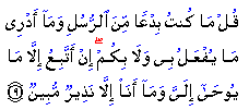 "Say: I am not the first of God's messengers. I do not know what will be done with me or with you. I only follow what is being revealed to me. I am only a plain warner."
