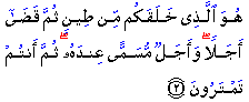 "He created you out of clay and decreed a fixed term in this world and another one known only to Him. Yet you are still in doubt."