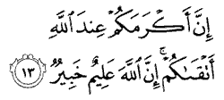 "Indeed, the most honourable of you in the sight of God is the most God-fearing of you. Surely, God is all-knowing, all-aware."