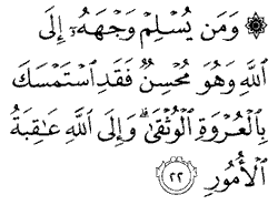 "And whosoever submits his face to God and is virtuous has indeed grasped the most unfailing handhold, and unto God is the end of all affairs."